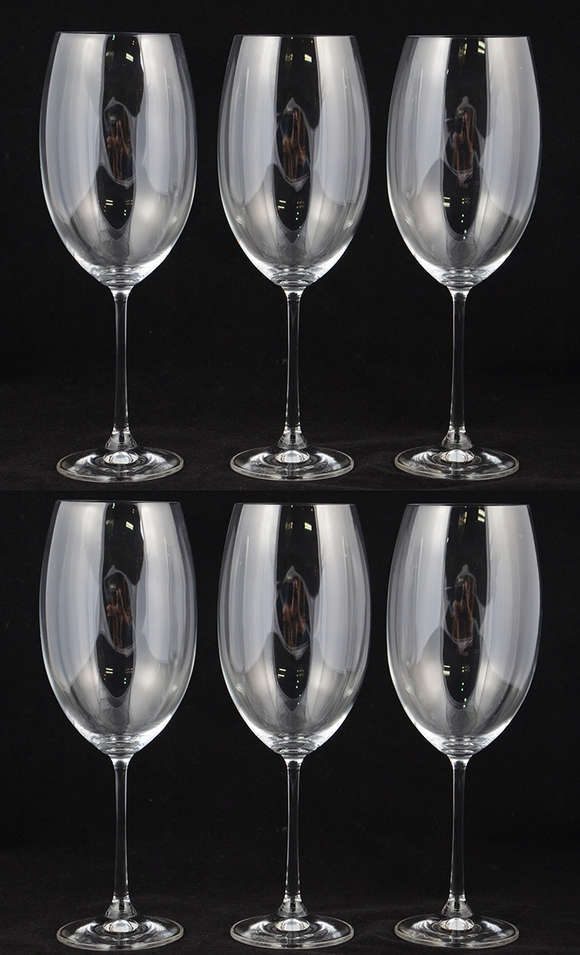Seis cálices para vinho tinto de cristal da Bohemia, 800 ml.