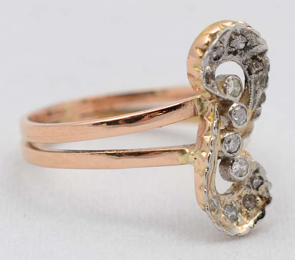 Anel em platina sobre ouro 18 k e brilhantes. Peso total 3,3 g - Aro 16.