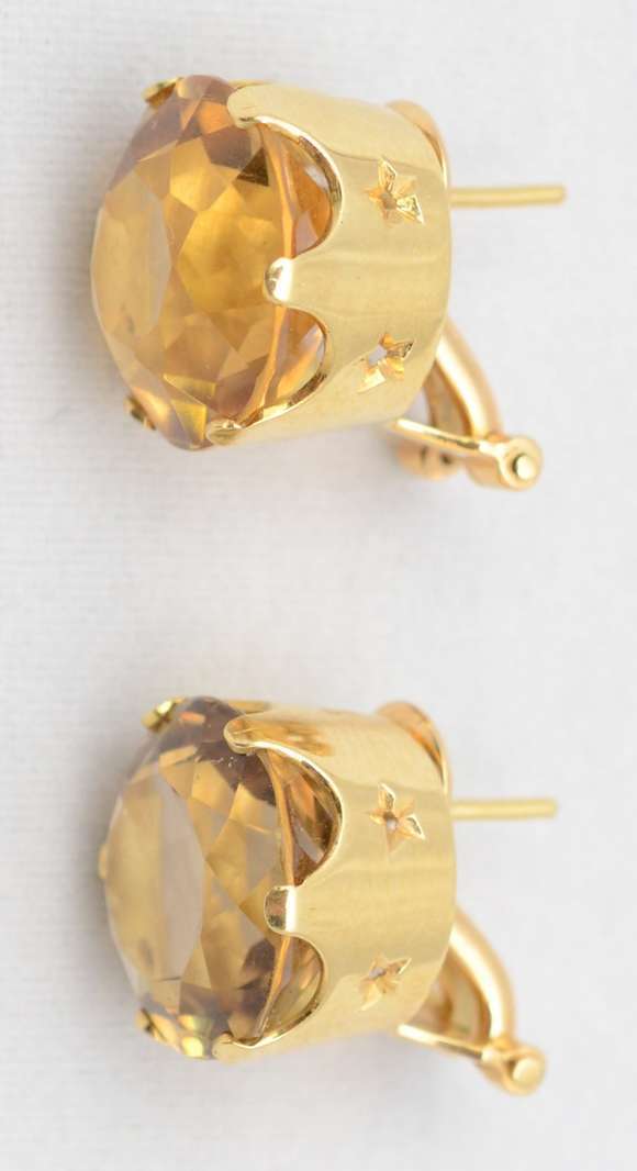 HSTERN - Par de brincos em ouro amarelo 18 k com topázio. Peso total 10 g - Diâmetro 1,5 cm.