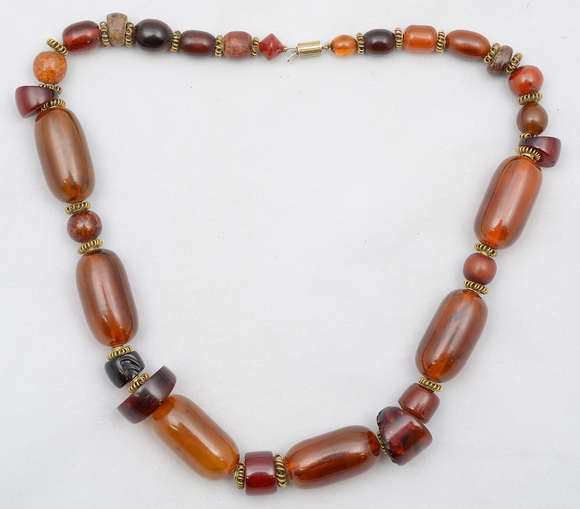 Colar em peças de ambar, fabricado na Polônia, com detalhes e fecho em prata. Comprimento 54 cm.