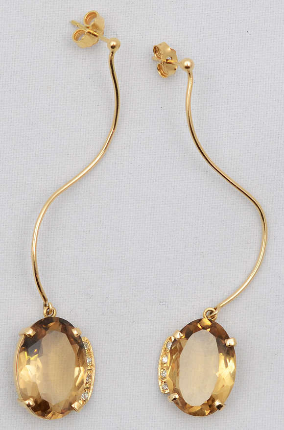 Par de brincos em ouro amarelo com topázio e 8 brilhantes. Peso total 6,0 g - Altura 6,5 cm.