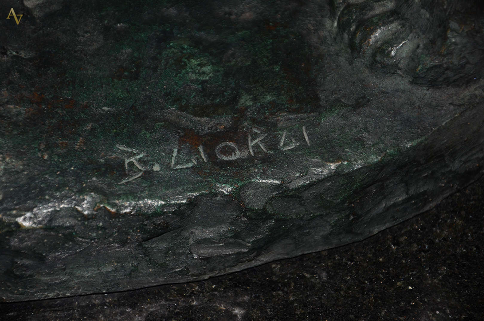 Escultura de bronze maciço "Lavrador", assinada A. R. Altura 31 cm.