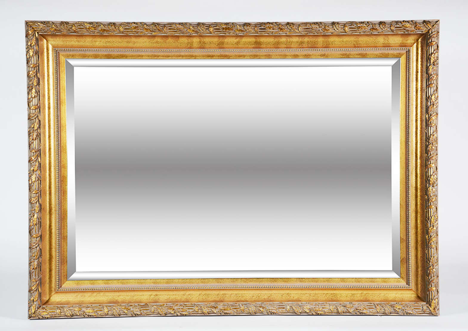 Espelho de cristal com moldura dourada. Medidas 80 x 60 cm.