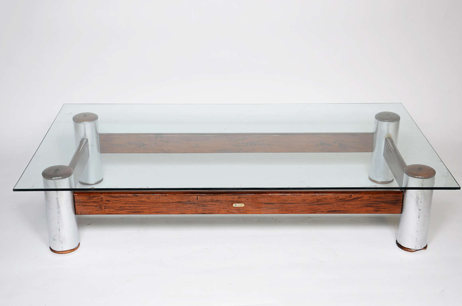 Mesa de centro com vidro. Medidas 1,40 x 0,95 m e altura 0,39 m.