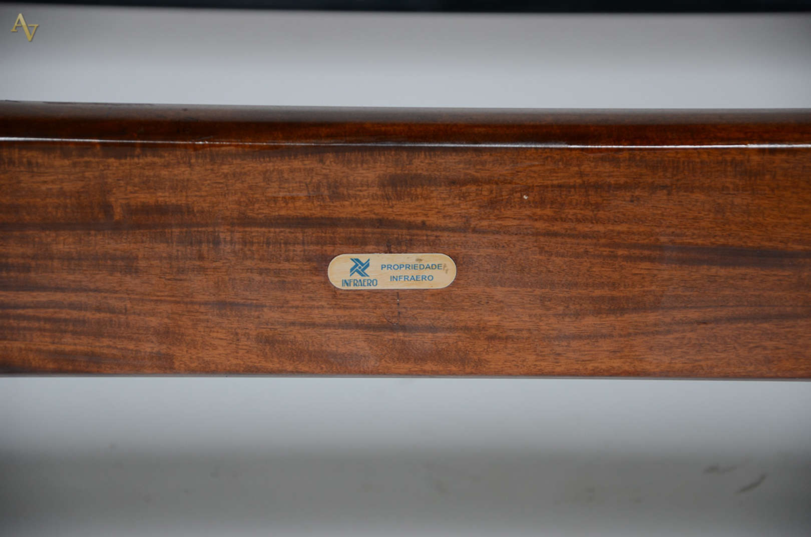 Mesa com tampo de vidro. Medidas 1,91 x 0,92 m e altura 0,78 m.