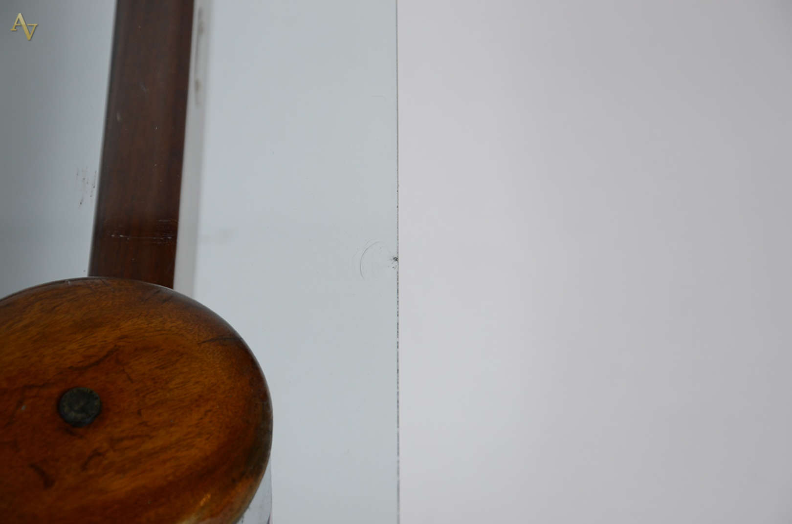 Console com espelho de metal e tampo de mármore. Medida console 0,66 x 0,27 m e altura 0,83 m e espelho 0,40 x 0,63 m.