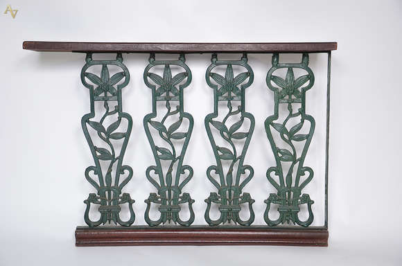 Balaustrada em ferro e madeira. Medidas 1,10 x 0,19 m e altura 0,77 m.