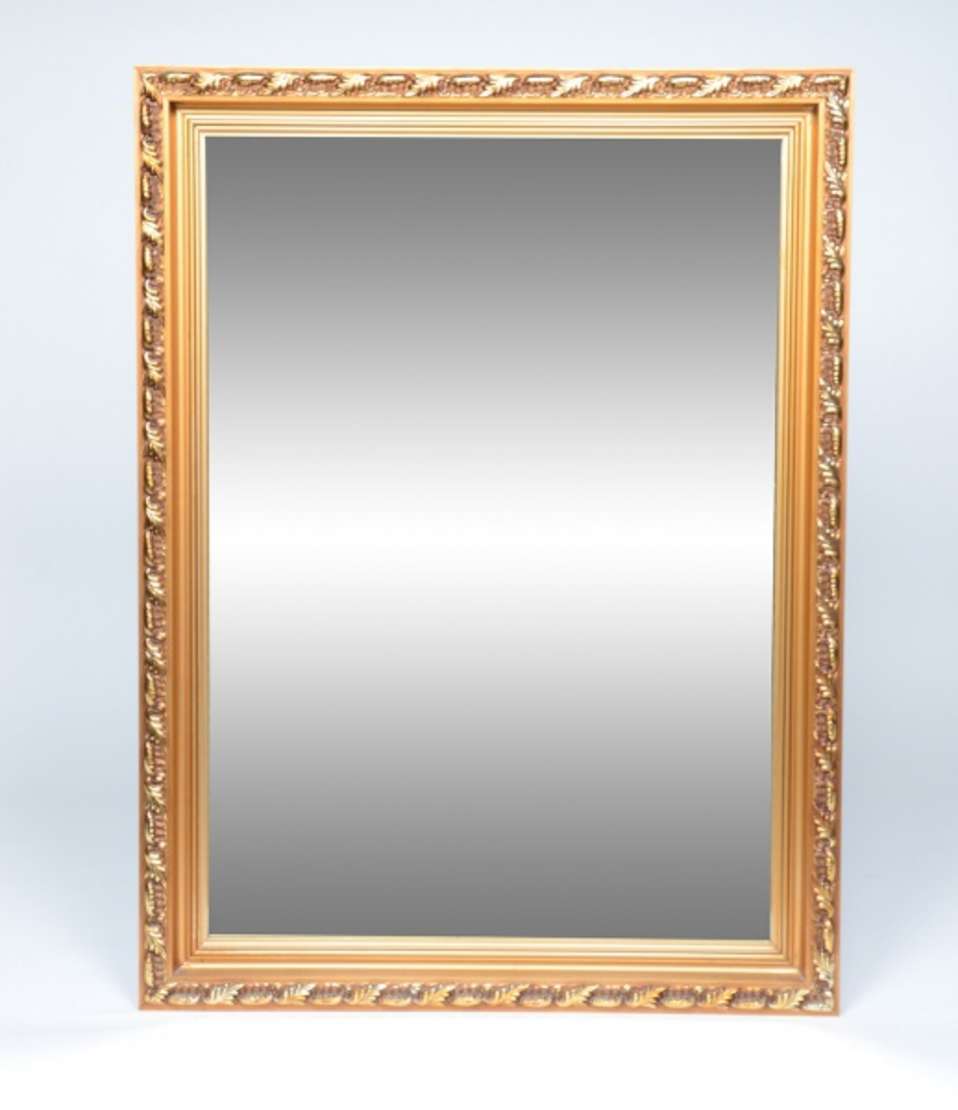 Espelho com moldura trabalhada. Medidas 1,25 x 0,75 m.