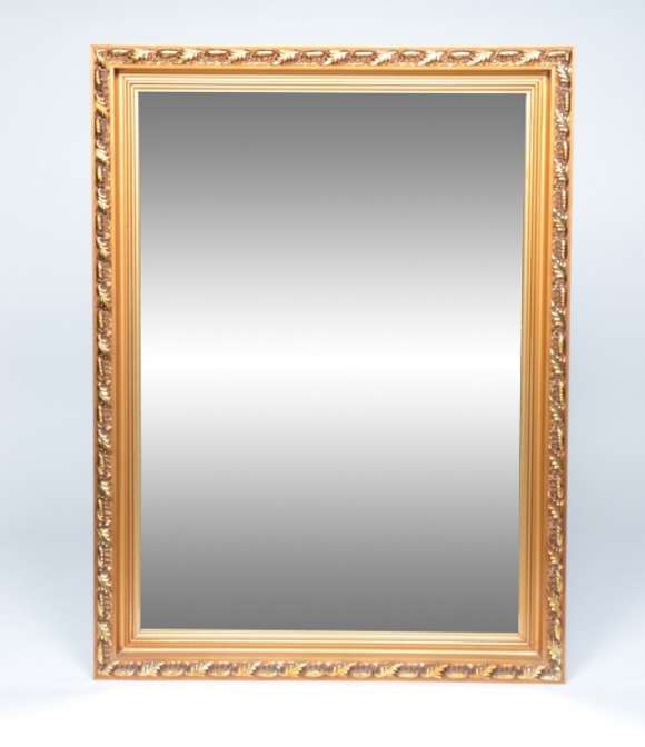 Espelho de cristal com moldura dourada. Medidas 80 x 60 cm.