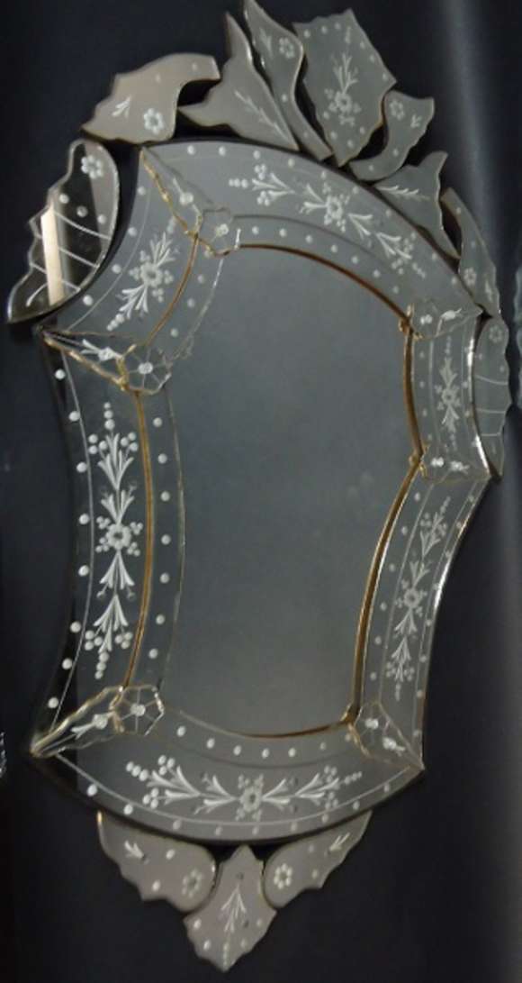 Espelho estilo veneziano. Medidas 1,24 x 0,70 m.