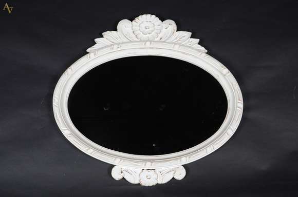 Espelho oval com moldura branca. Medidas 65 x 68 cm.