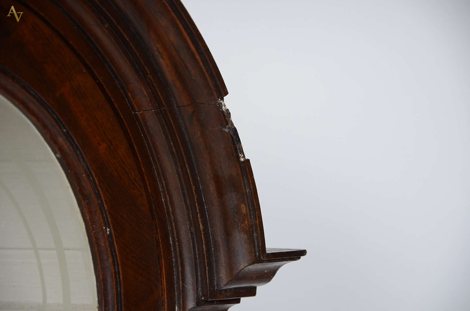 Mesa/ coluna de madeira nobre com três pernas torneadas. Altura 0,75 m e diâmetro 0,39 m.