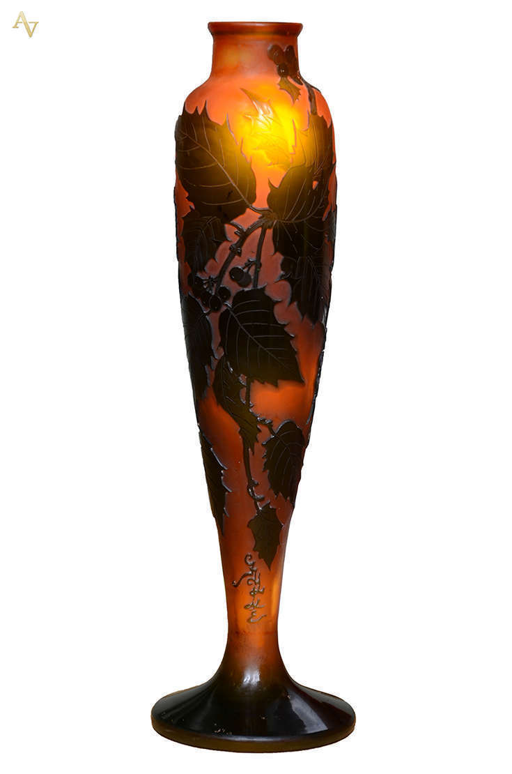 Vaso de opalina decorado com flores. Altura 22 cm e diâmetro 11 cm (com quebrados e restauro).
