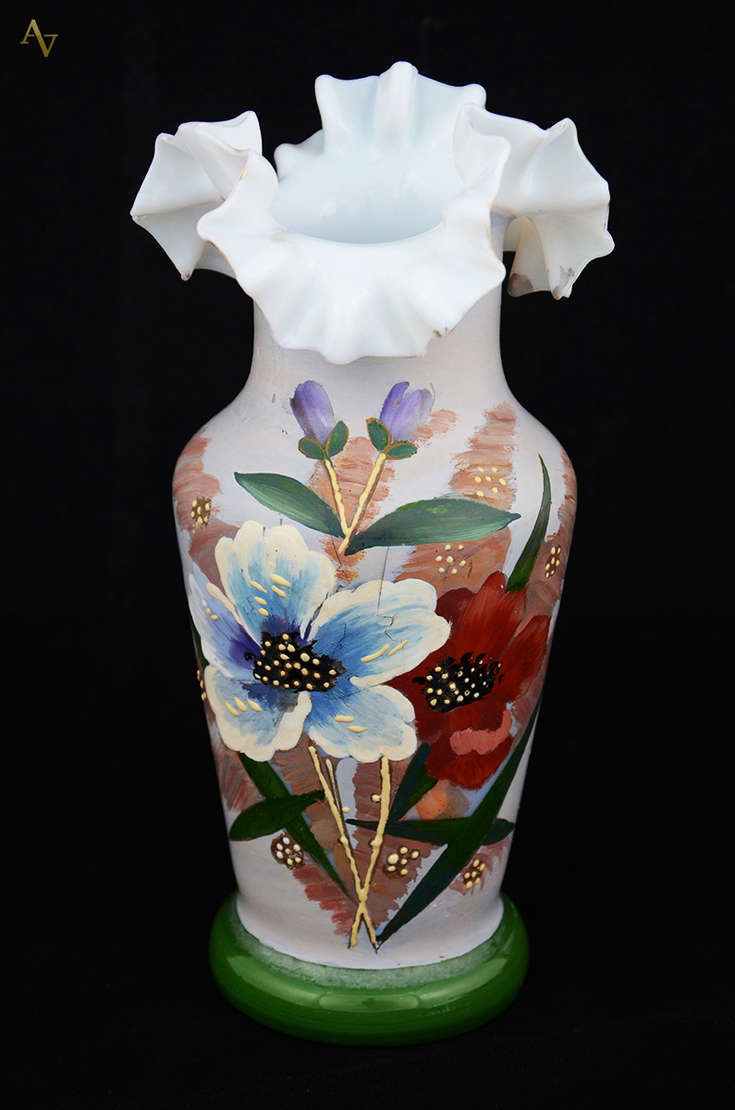 Fruteira de pé alto em murano translúcido, borda com garras e friso azul cobalto. Medidas 35 x 37 cm e altura 14,5 cm.