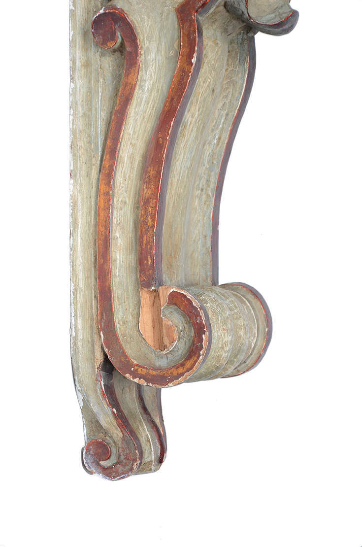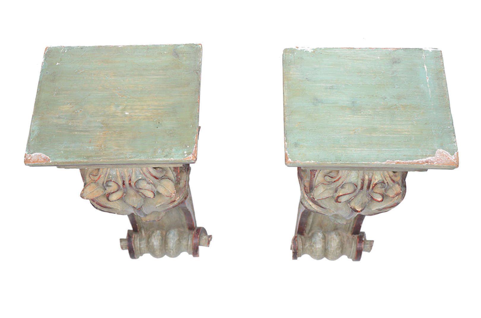 Peanha entalhada com florões. Medidas 39 x 18 cm (base) e altura 30 cm.