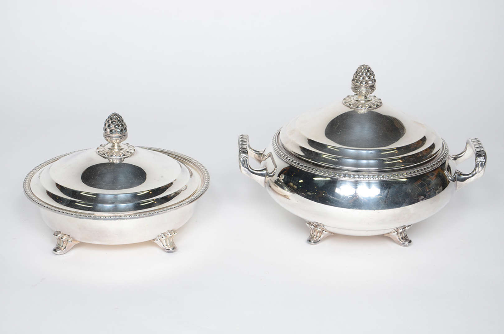 Baixela de jantar de metal prateado composta de 11 peças. (medida da peça maior 60 X 41 cm ).