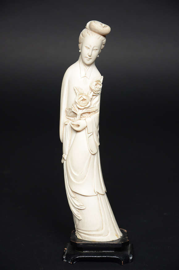 LAN TSAI HO escultura de marfim oriental representando deusa dos jardineiros
