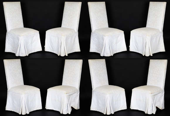 Conjunto com 8 cadeiras de madeira nobre para sala de jantar, estilo colonial, estofamento com capa presa.