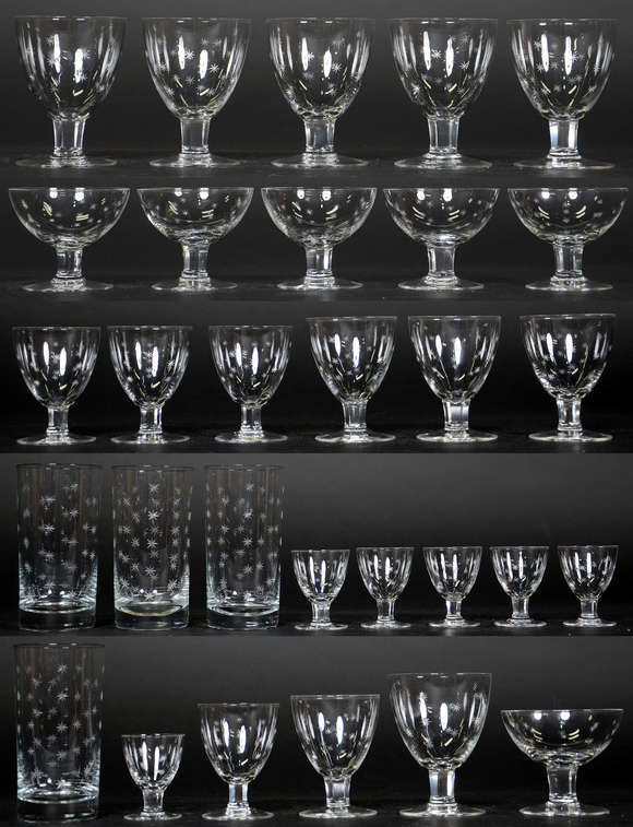 Conjunto de cristal tcheco sendo : 11 copos para água , 9 taças para champagne, 3 para vinho tinto, 3 para vinho bra...