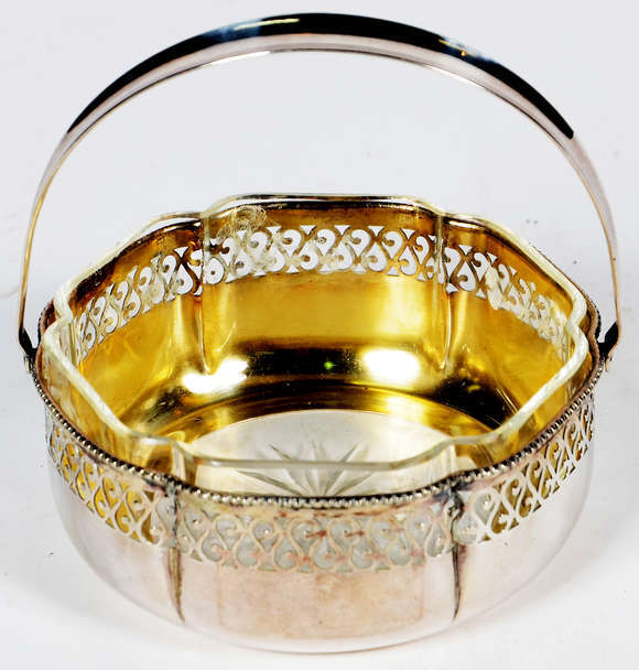 Pequena cesta de prata 800 mls com recipiente interno de cristal . Peso da prata