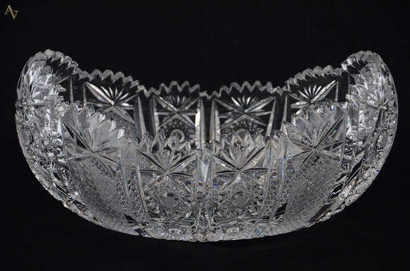 Fruteira de cristal tcheco lapidado feitio navete.