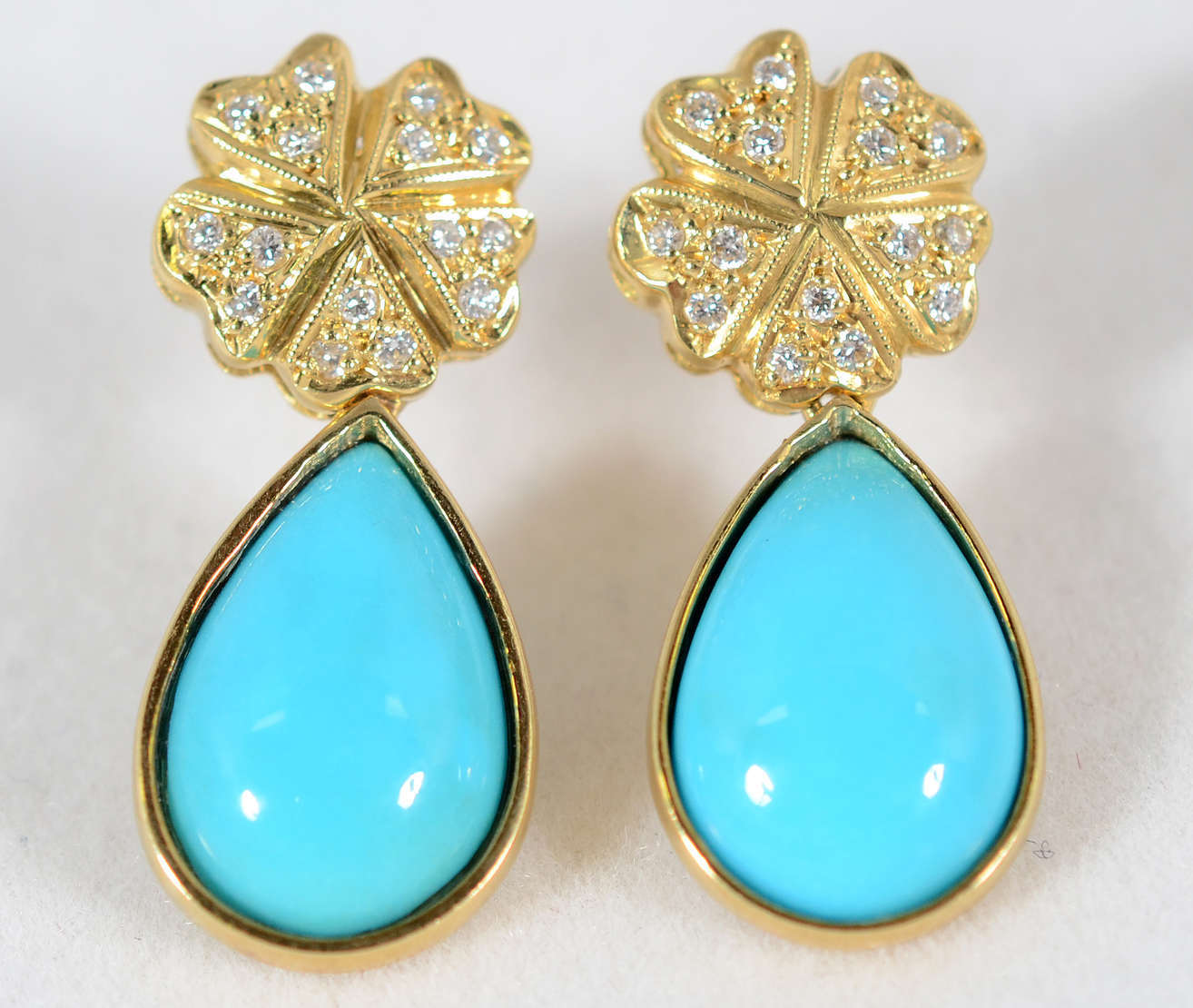 Pendente de ouro 18k italianos ¨Meia lua¨ estilizada de turquesa , Fecho para opção de uso