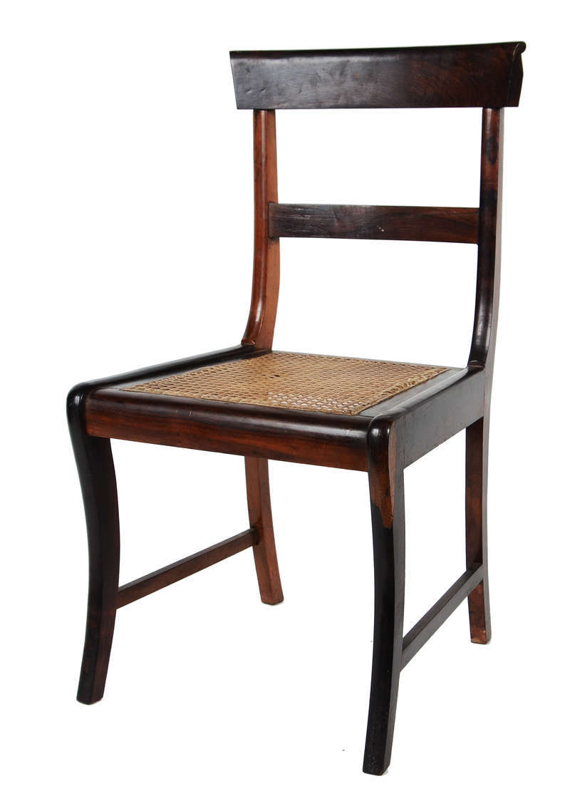 Seis Cadeiras de madeira nobre, estilo ingles, encostos com traves em "X", assentos com almofadas soltas.