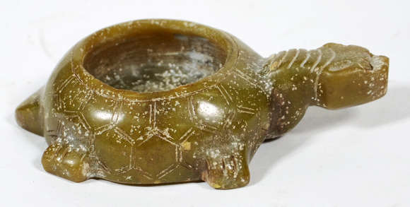 Pequeno tinteiro chinês de pedra sabão na forma de tartaruga, peça anos 40.
