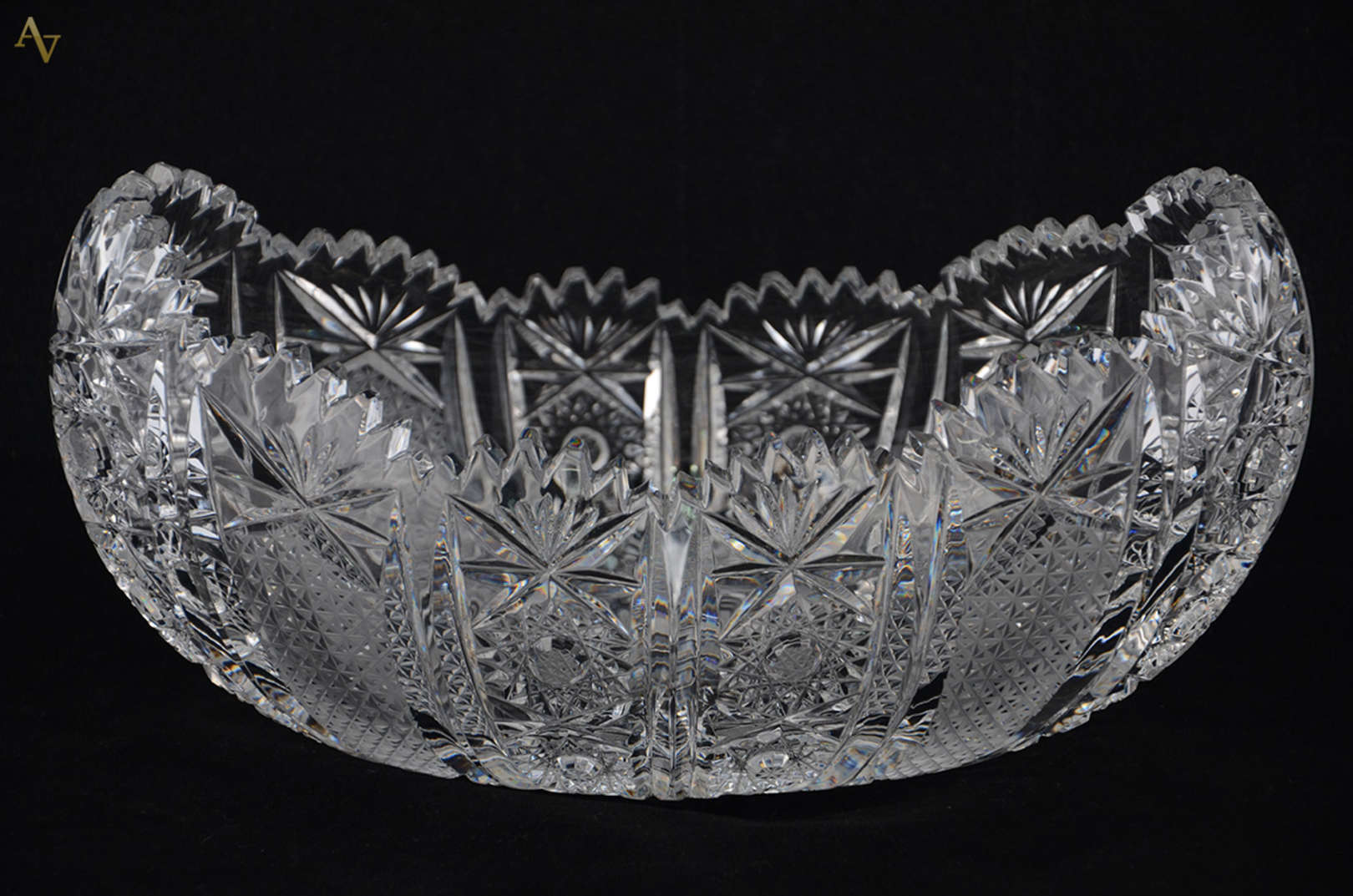 Três peças de cristal tcheco lapidado, sendo : Prato (28 X 28 cm) e dois bowls (20 cm de diâmetro )