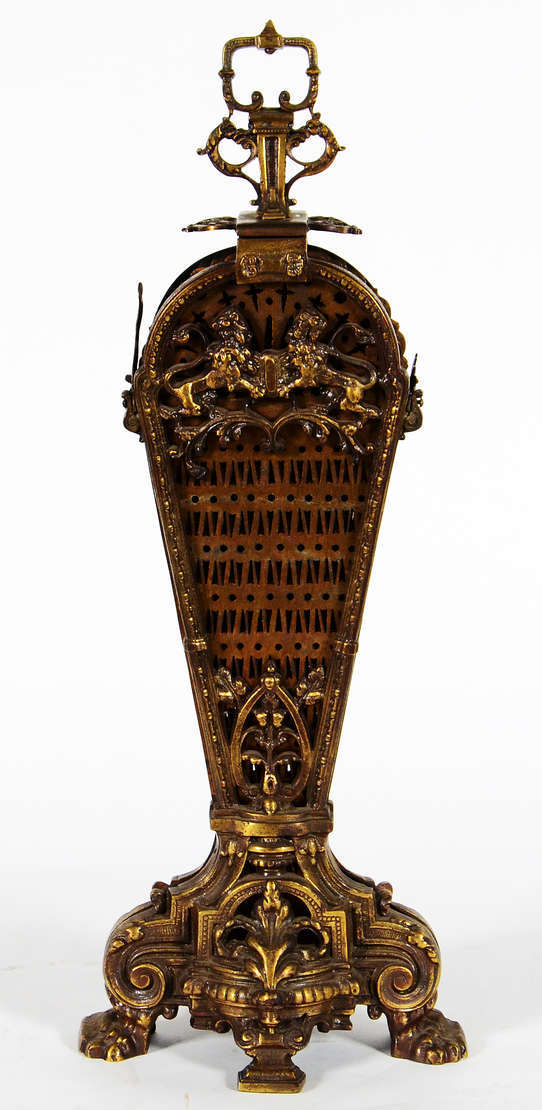 Par candelabros italianos Imperium Rosso Verona Rajado . Base de castiçais de bronze dourado e cinzelado