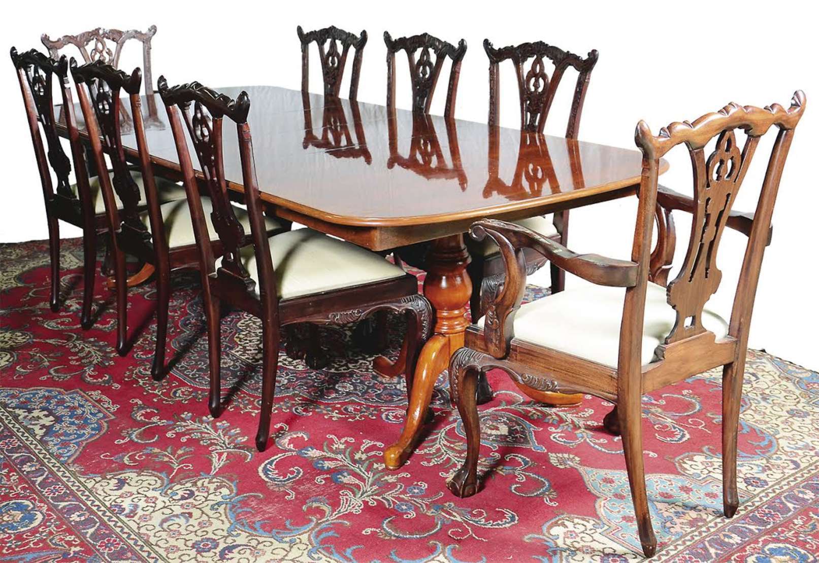 Mesa de apresentação de madeira nobre com tampo de mármore branco, estilo Luis Felipe.