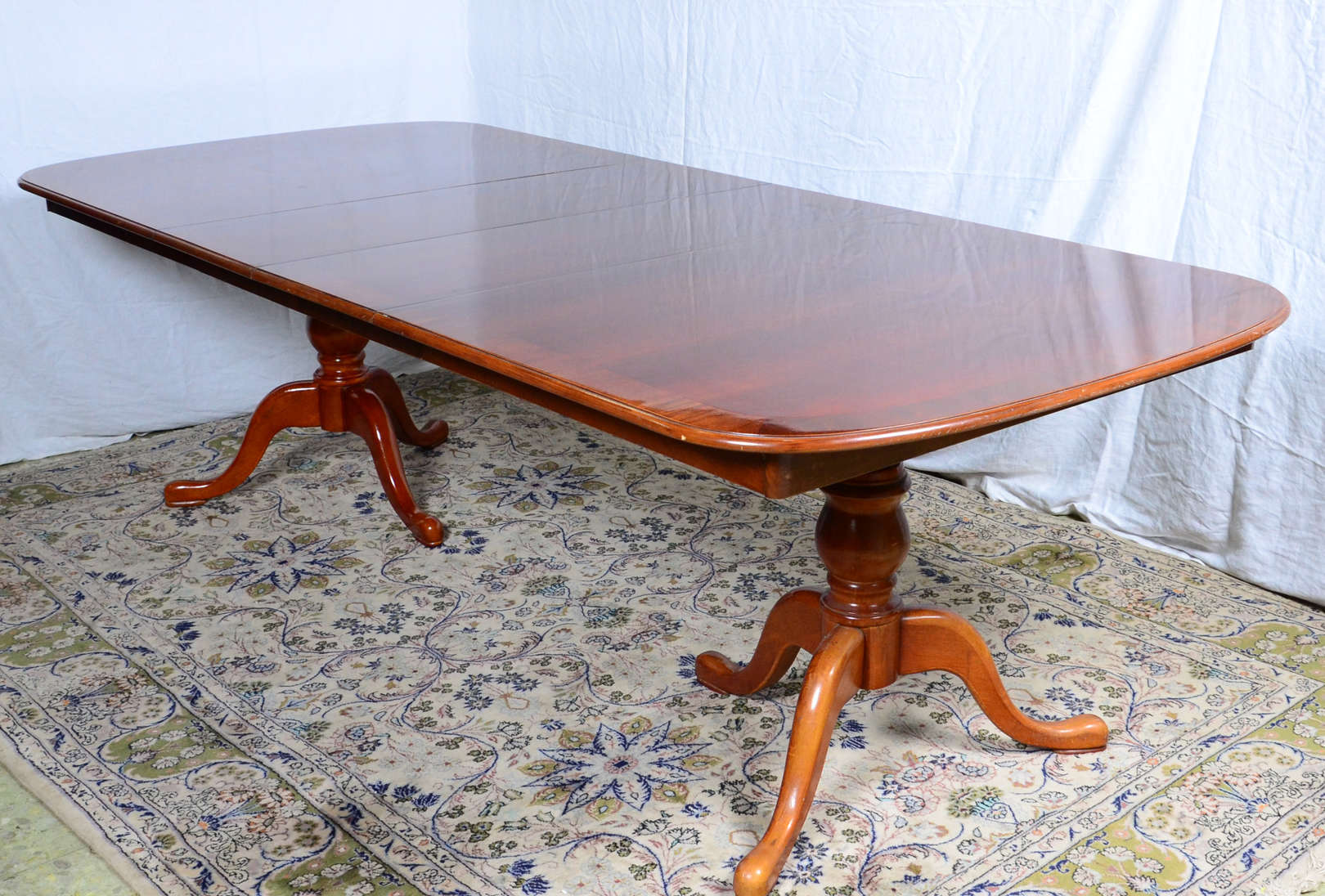 Belíssimo Console de madeira nobre, quatro pernas cilíndricas frisadas ligadas por traves inferiores, tampo de mármor...