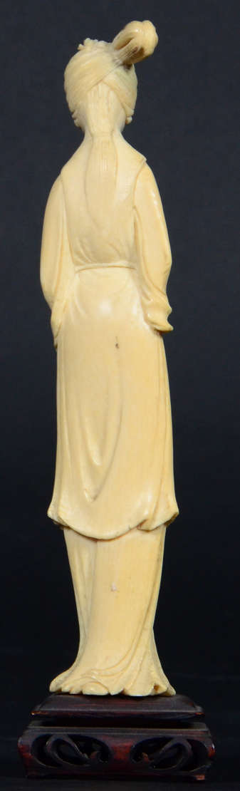 Estatueta de petit bonze representando figura feminina com base de mármore. Assinado