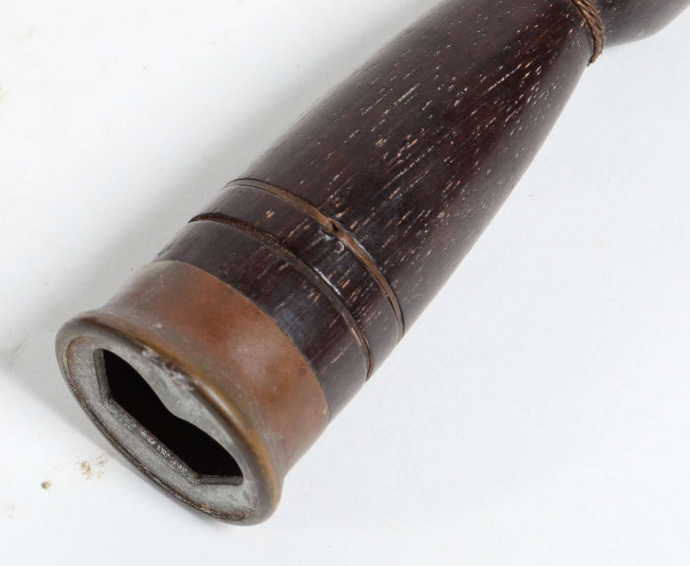Par de antigas campainhas de bonde em bronze e base de madeira.