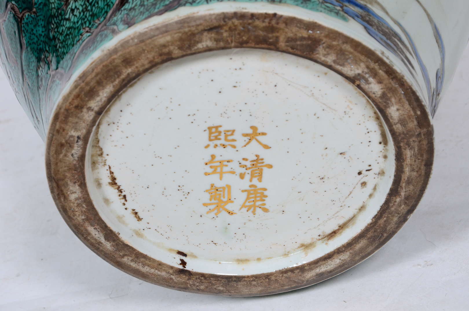 Par de vasos de porcelana azul decorados com pinturas de cruz em dourado e flores em policromia.