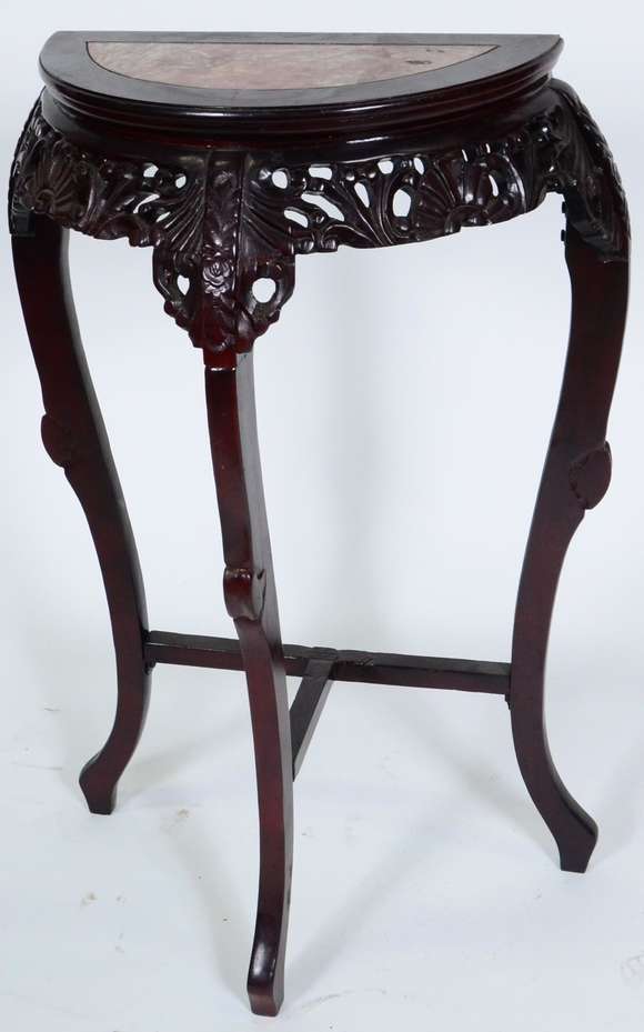 Coluna oriental de madeira entalhada e tampo de mármore feitio semi circular