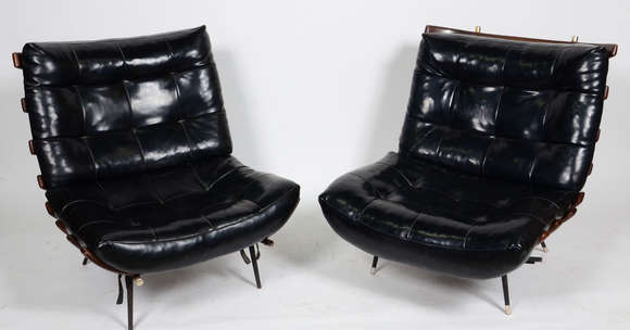 Par de poltronas "COSTELA" do design argentino MARTIN EISLER, em ripas de madeira nobre "anatômicas", estofamento de ...