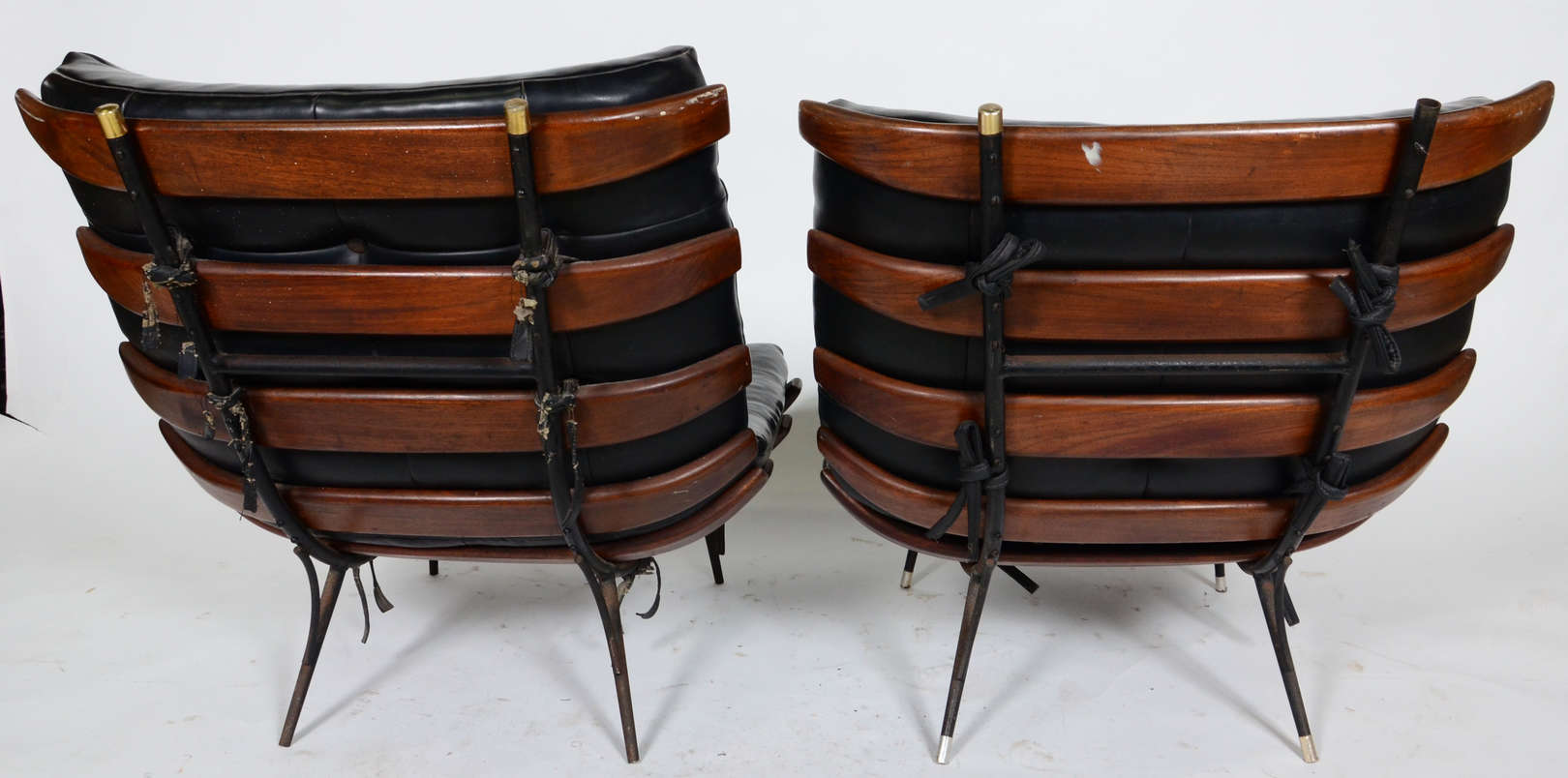 Conjunto de duas mesas de cavalete em madeira folheada( tampo necessita de restauro)