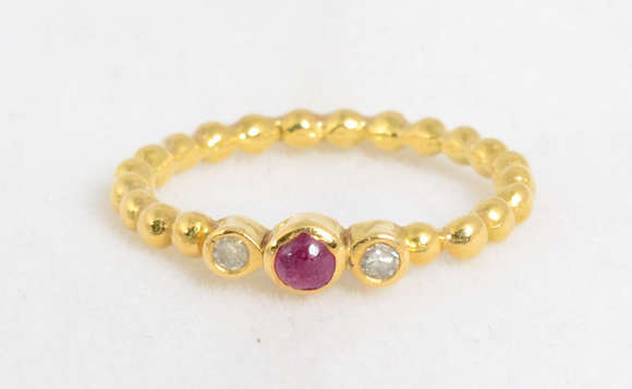 Anel de ouro 18 k com rubi e brilhantes, aro 15 , peso total