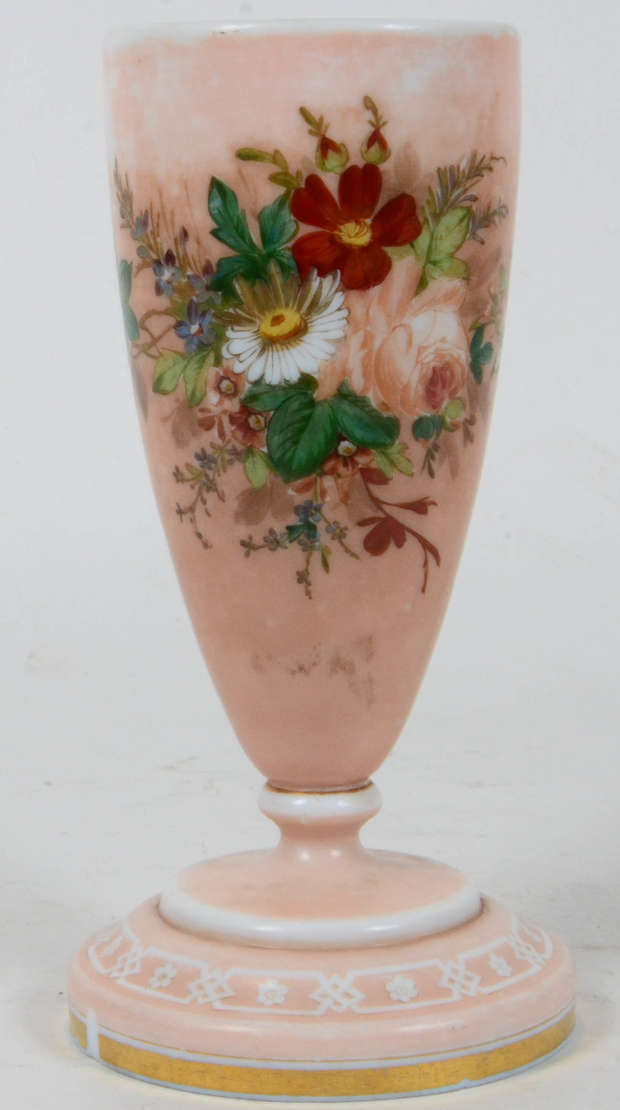 Ânfora de porcelana com dourado e flores em relevo