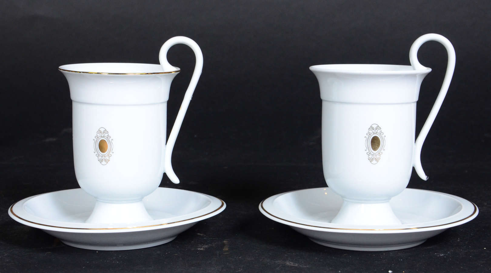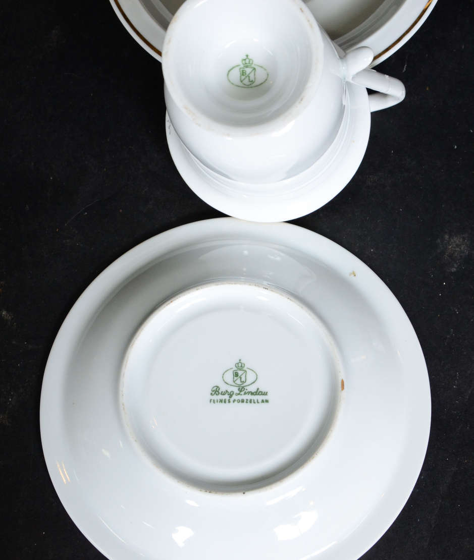 Serviço de chá de porcelana francesa LIMOGES, composto de 12 xícaras com pires, 12 pratos de sobremesa, 2 bules, açuc...