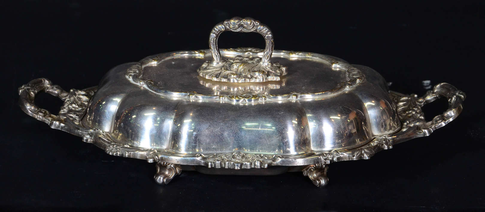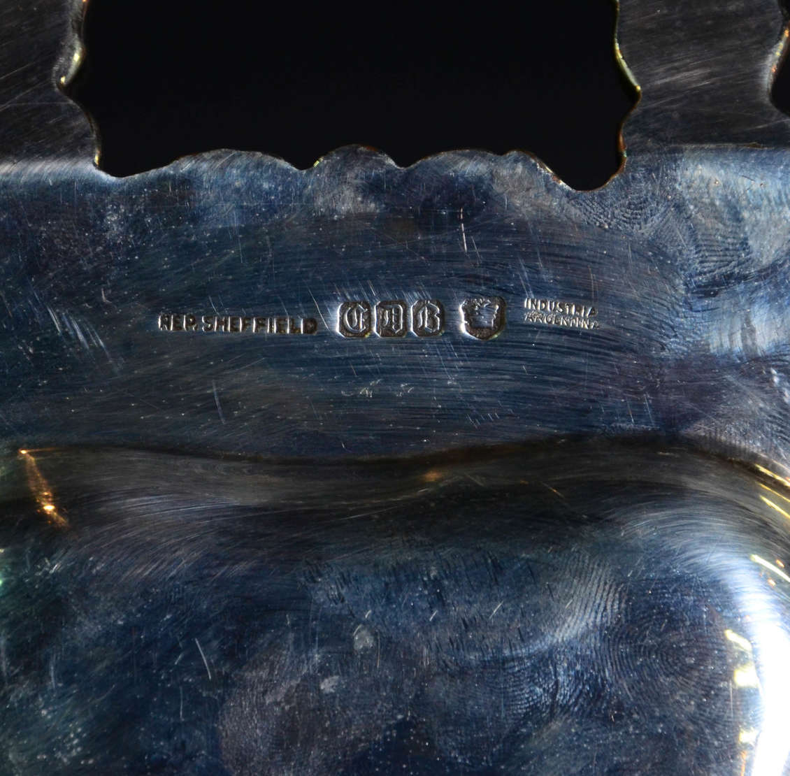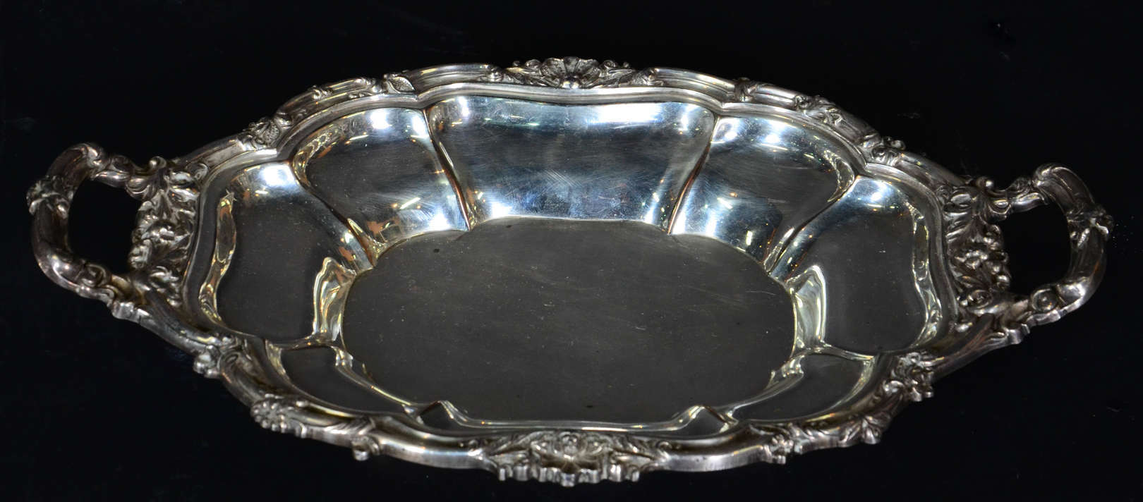 Fruteira de metal prateado, trabalhado em baixo relevo