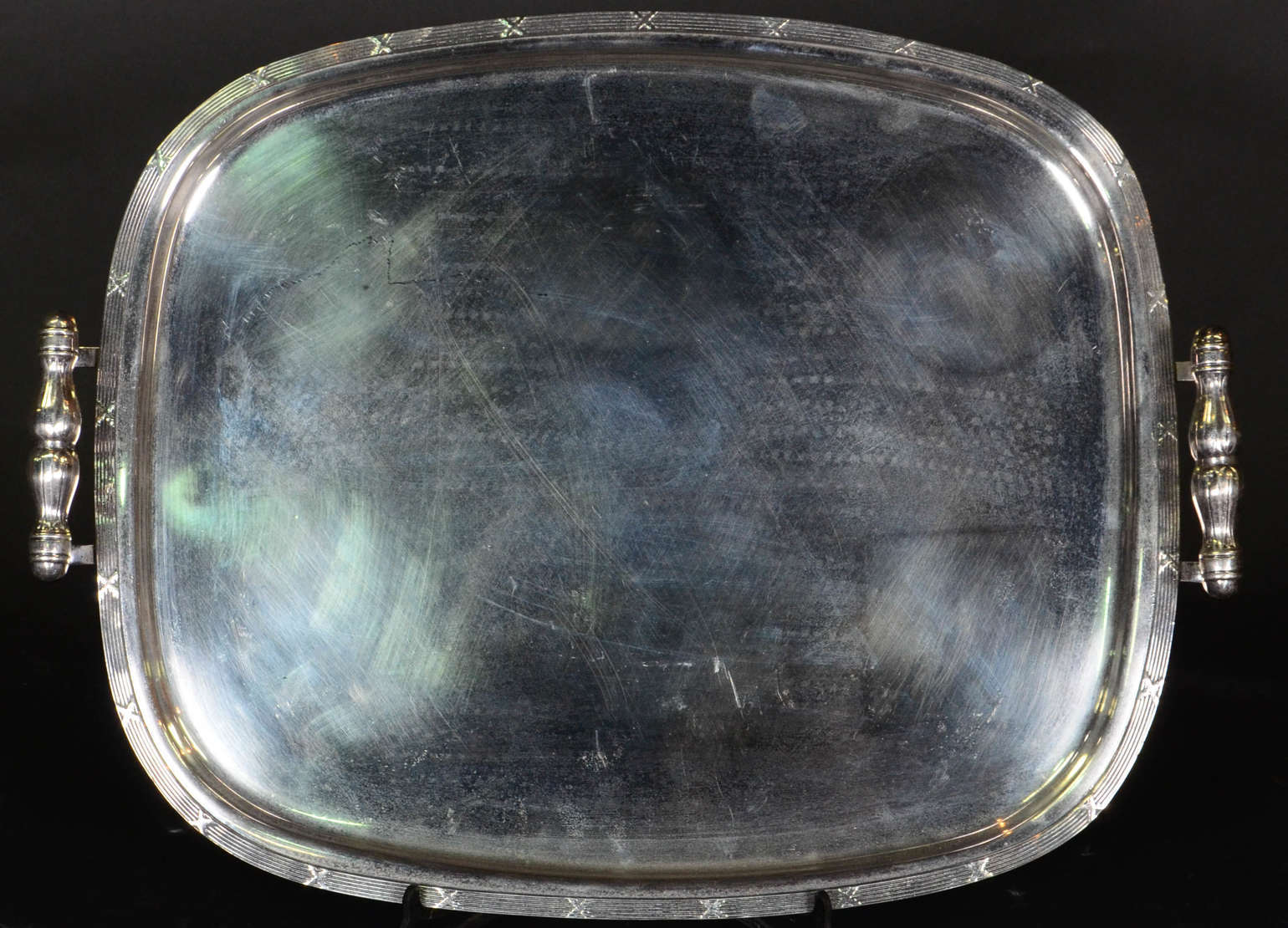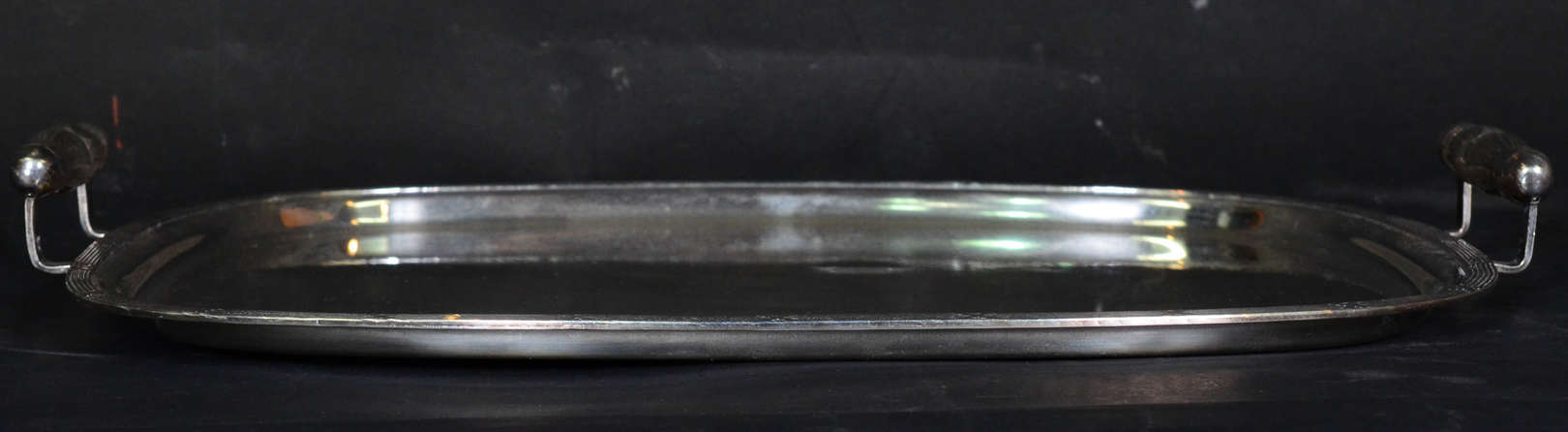 Fruteira de metal prateado, trabalhado em baixo relevo