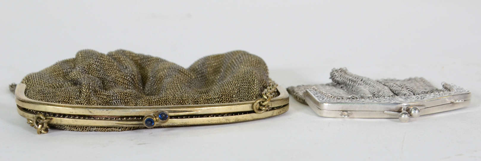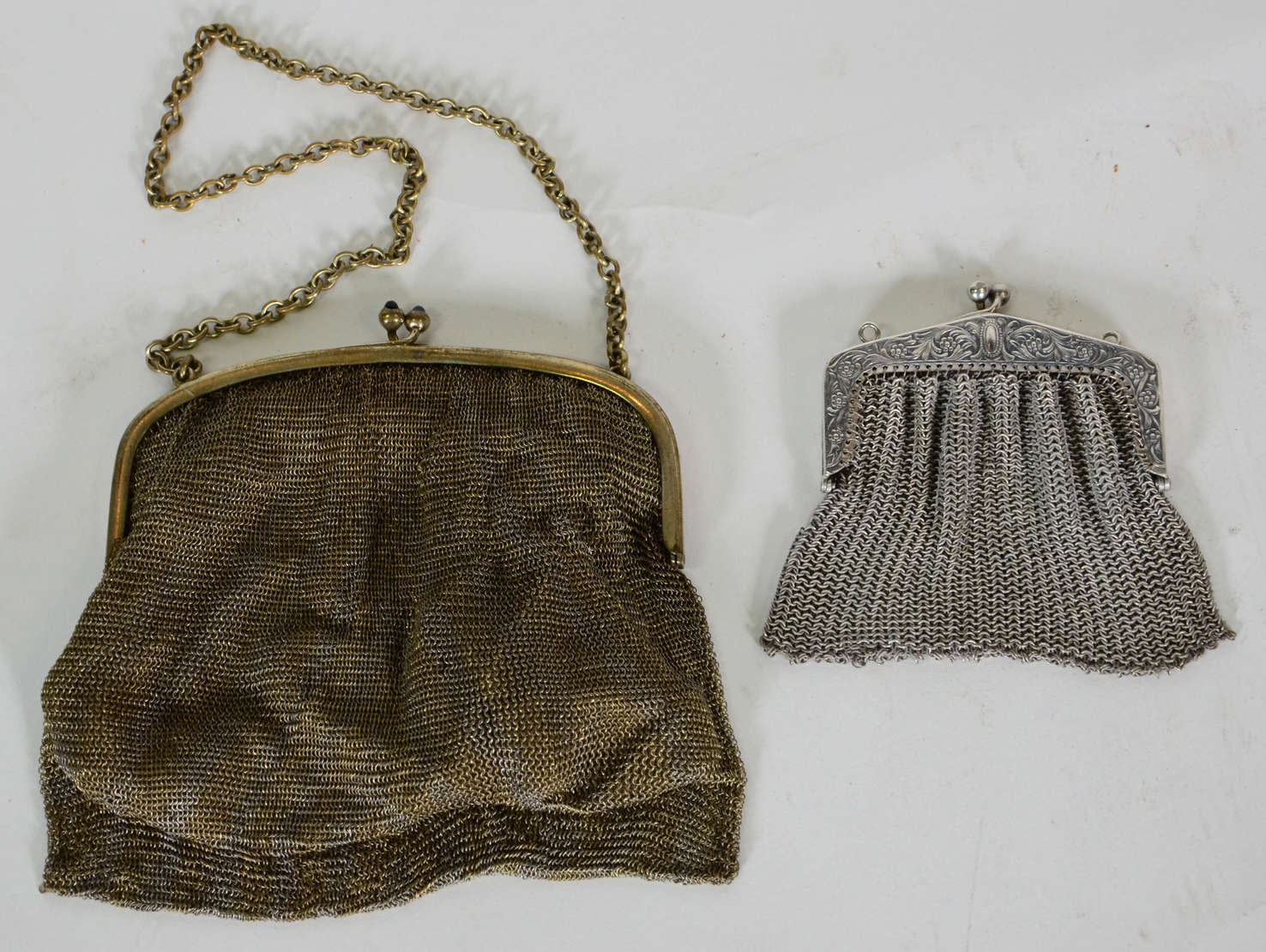 Duas bolsinhas em malha de metal prateado, altura paça maior