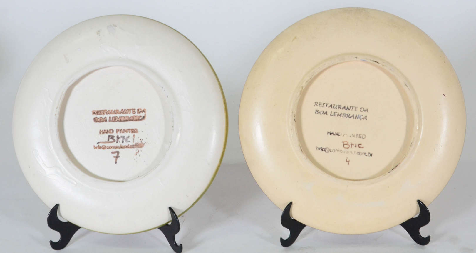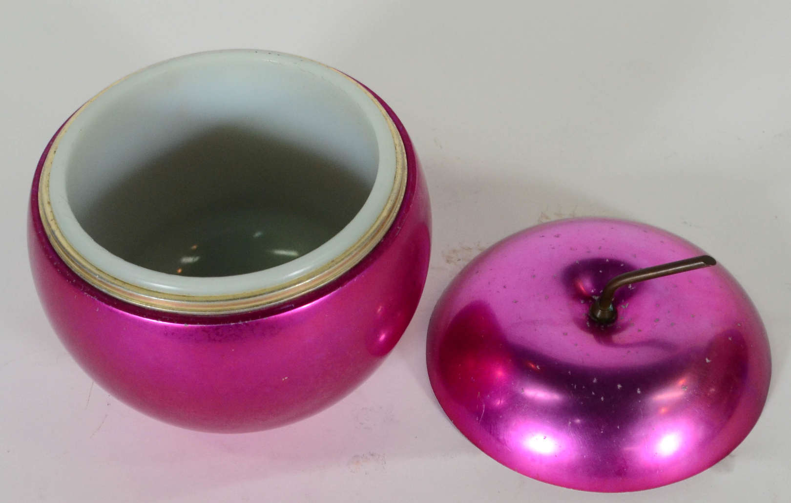 Par de pinhas de vidro vermelho com pó de ouro , bases de metal dourado. Assinadas.