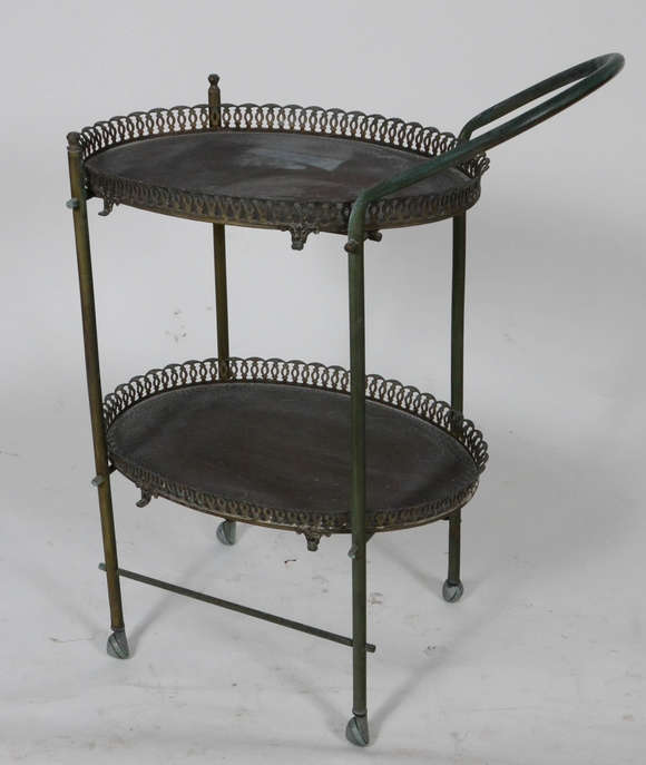 Carrinho de cha de metal com duas bandejas ovais removíveis ( metal com desgastes)