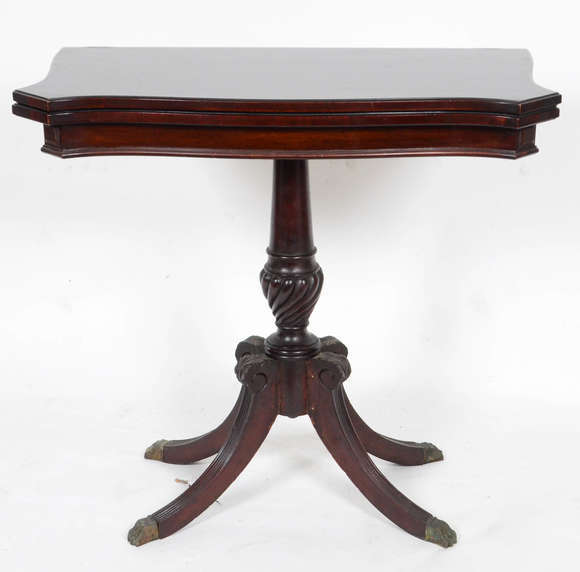 Mesa de encostar de madeira nobre, tampo dobrável, saia canelada