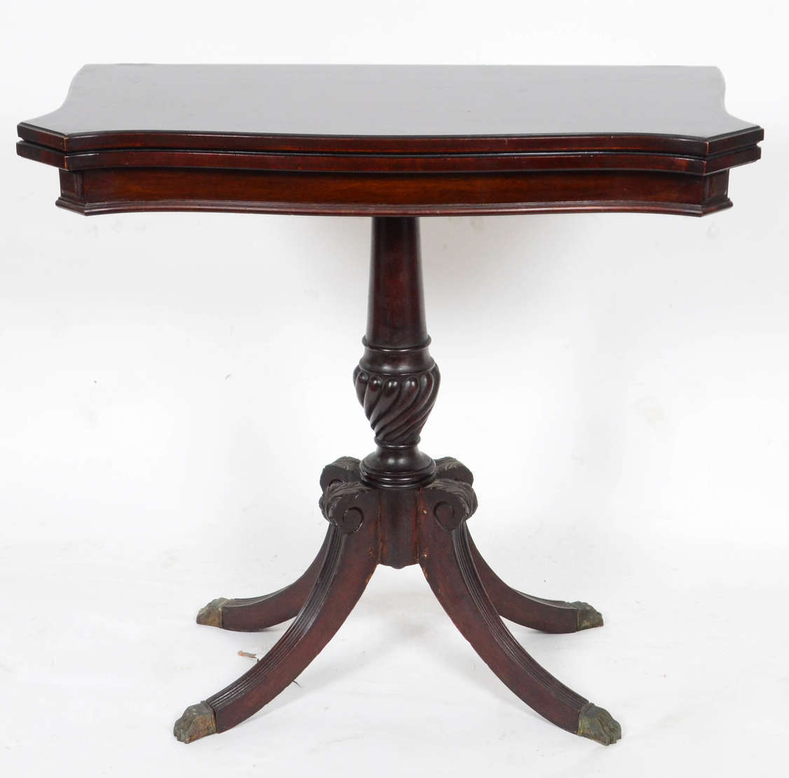 Não vendidoLote 160 - Ao vivo! Mesa de encostar de madeira nobre, tampo dobrável, saia canelada