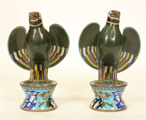 Par de peanhas de ferro europeu decoradas com rostos femininos.