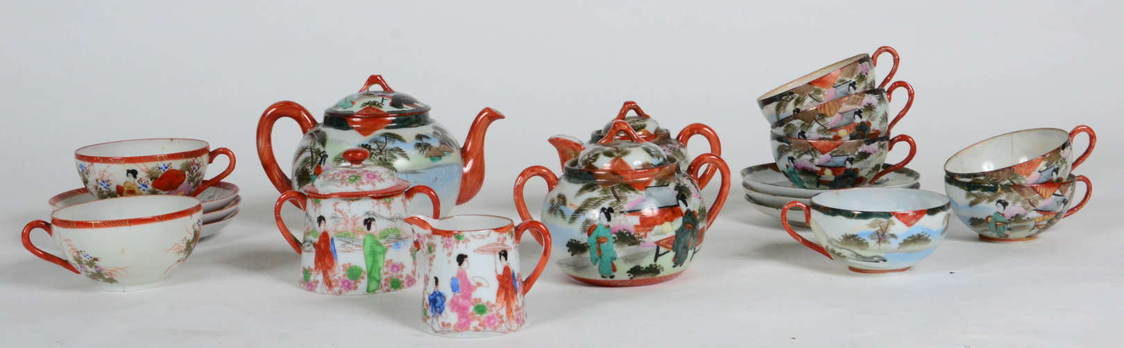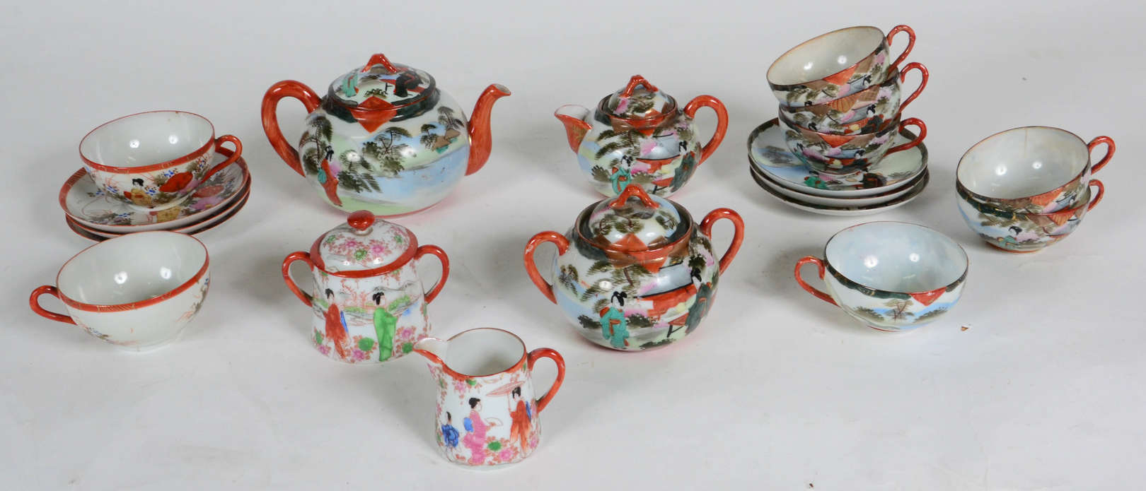 Vinte um pratos de porcelana japonesa decoração floral em policromia.